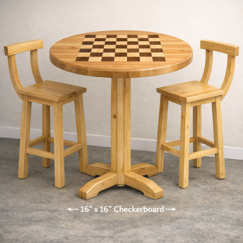 "PONDEROSA PINE CHECKERBOARD TABLE WITH BARSTOOLS!"